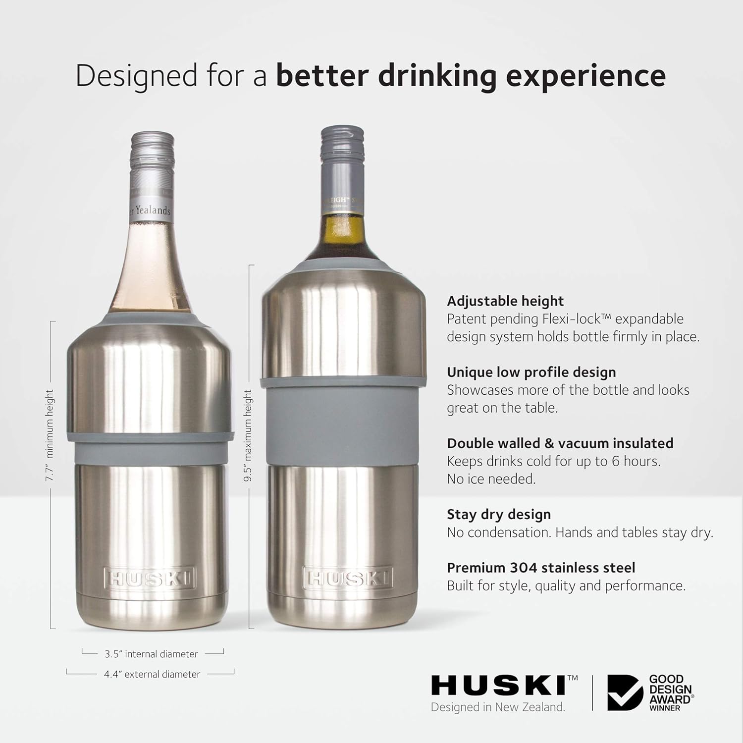 Keeps Wine Or Champagne Bottle Cold Up To 6 Hours Perfect Gift For Wine Lovers Brushed Stainless New Wine Accessory Huski Wine Cooler Premium Iceless Wine Chiller Award Winning Design Kitchen Tools